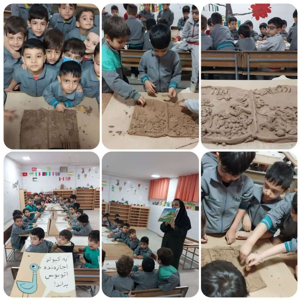 به مناسبت هفته ی کتاب و کتابخوانی نوآموزان پیش دبستانی مهندس افضلی پور به صورت گروهی کتاب خشتی بزرگ ساختند.