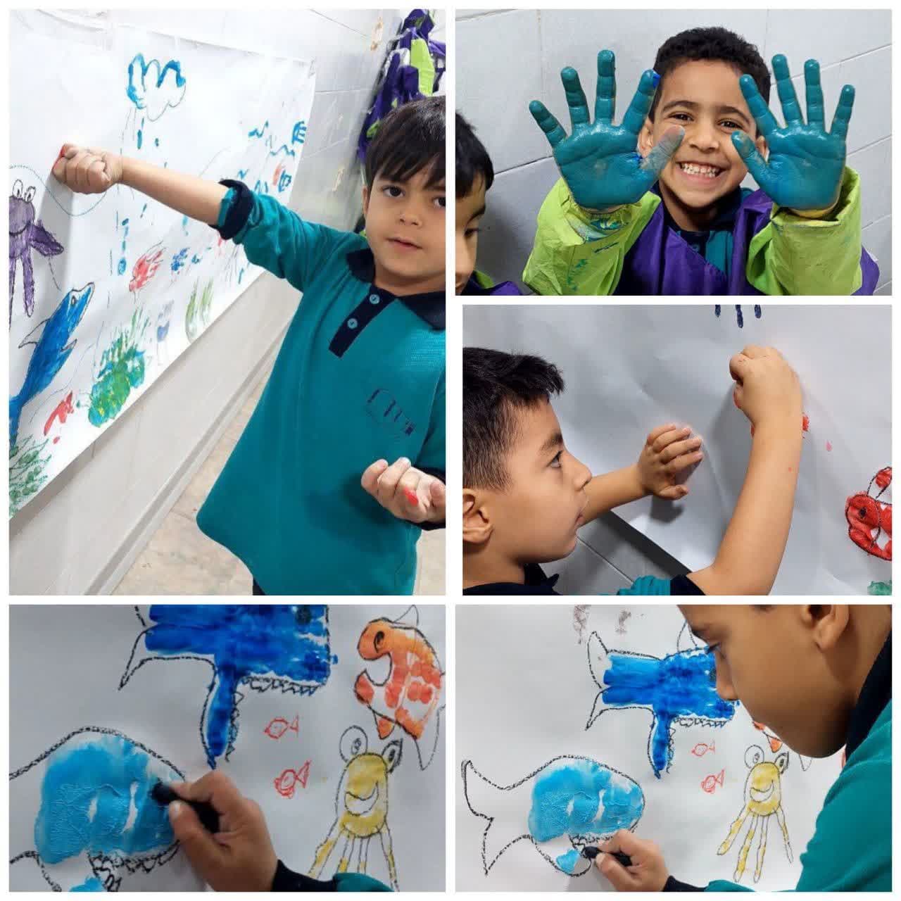 نو آموزان کودکستان مهندس افضلی پور برای تقویت دست ورزی، خلاقیت و همچنین افزایش کار مشارکتی با اثر دست خودشان نقاشیهای دریایی زیبایی را خلق کردند.