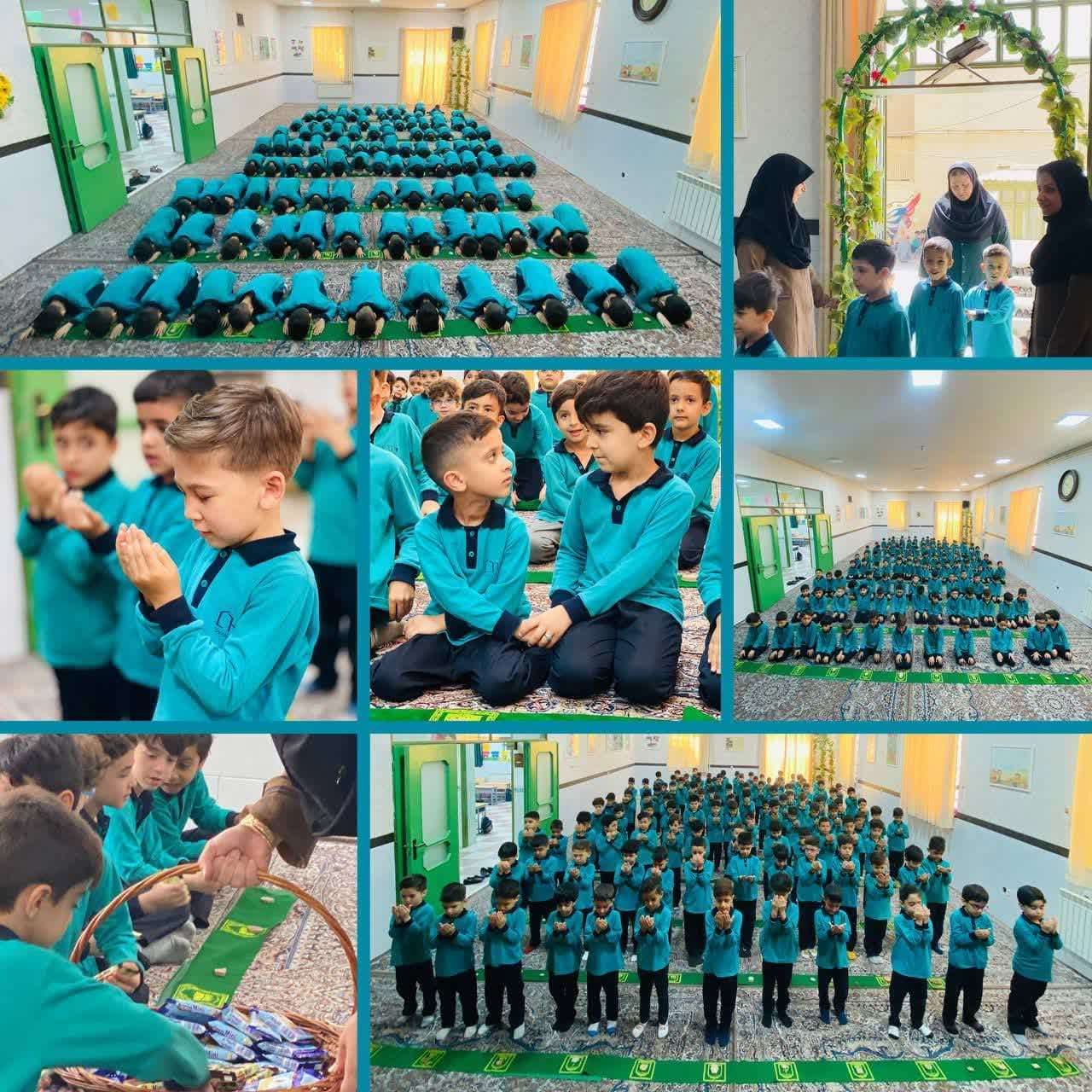 "در واپسین روزهای سال تحصیلی در کودکستان مهندس افضلی پور نوگلان نخستین گامهای پاکی و طهارت را آموختند. معلمان دلسوز، آیین وضو را چونان نقشی از مهربانی بر لوح جانشان حک کردند و آنان با چشمانی مشتاق، راز نیایش را در حرکاتی آهسته و آیینی آموختند. سپس همگی، با آشنایی با شکوه نیایش، نمازی دو رکعتی را همچون پرندگانی که نخستین پرواز را تجربه می کنند، به شیوه ی نمادین به جای آوردند. لحظه های بود که گویی نسیم معنویت، برگهای کتابهای درسی را ورق می زد و آیات قدسی در فضای نمازخانه طنین انداز می شد." (توجه به ساحت اخلاقی _عبادی)