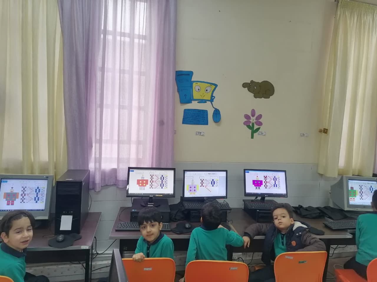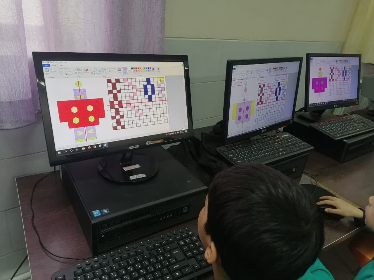 دبستان پسرانه ی مهندس افضلی پور جهت افزایش، تثبیت و تنوع یادگیری دانش آموزان پایه ی اول در زنگ کامپیوتر فعالیت تلفیقی علوم و ریاضی را در برنامه paint انجام دادند.
